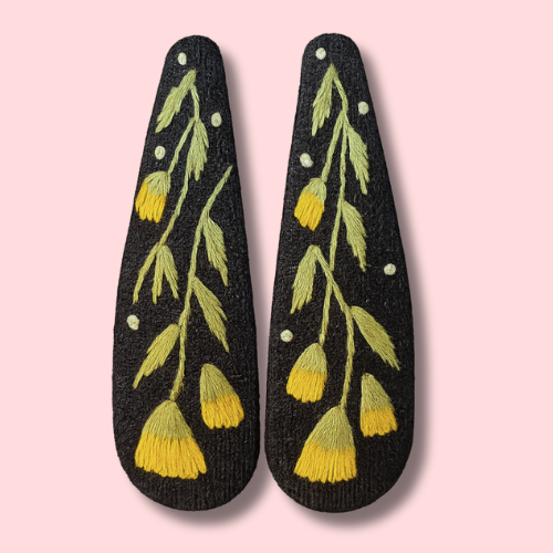Hand-stitched snap clips with embroidered floral designs. Backed with soft felt padding for a secure hold that won’t tug or pull—gentle on all hair types and comfortable for all-day wear. 🌼