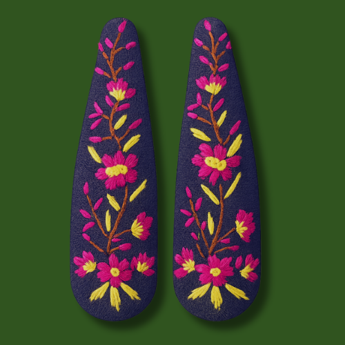 Hand-stitched snap clips with embroidered floral designs. Backed with soft felt padding for a secure hold that won’t tug or pull—gentle on all hair types and comfortable for all-day wear. 🌼