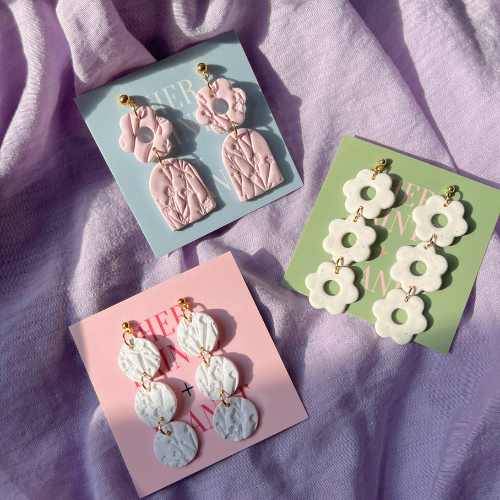 My gold findings are 14–18K gold-plated brass and are nickel-free. All clay earrings are handmade from high-quality polymer clay which are light weight and durable.